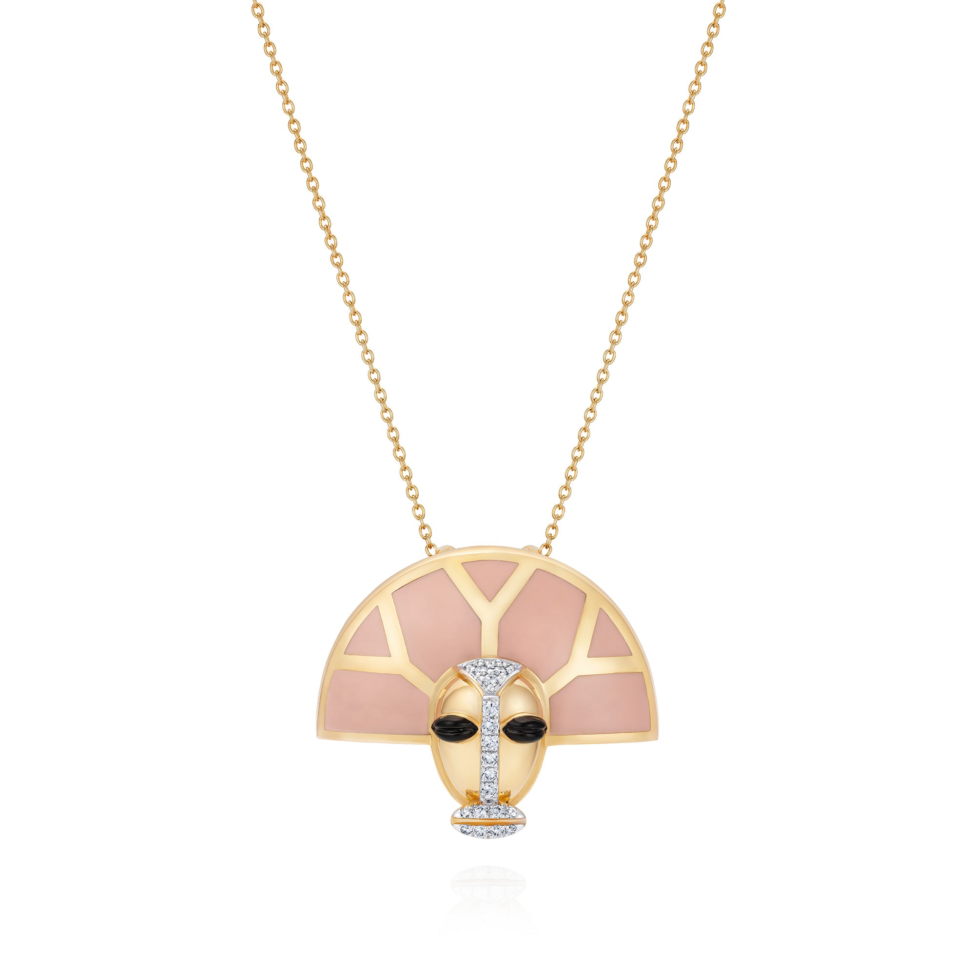 Nimi pendant in pastel pink ceramic with gold deco accents.