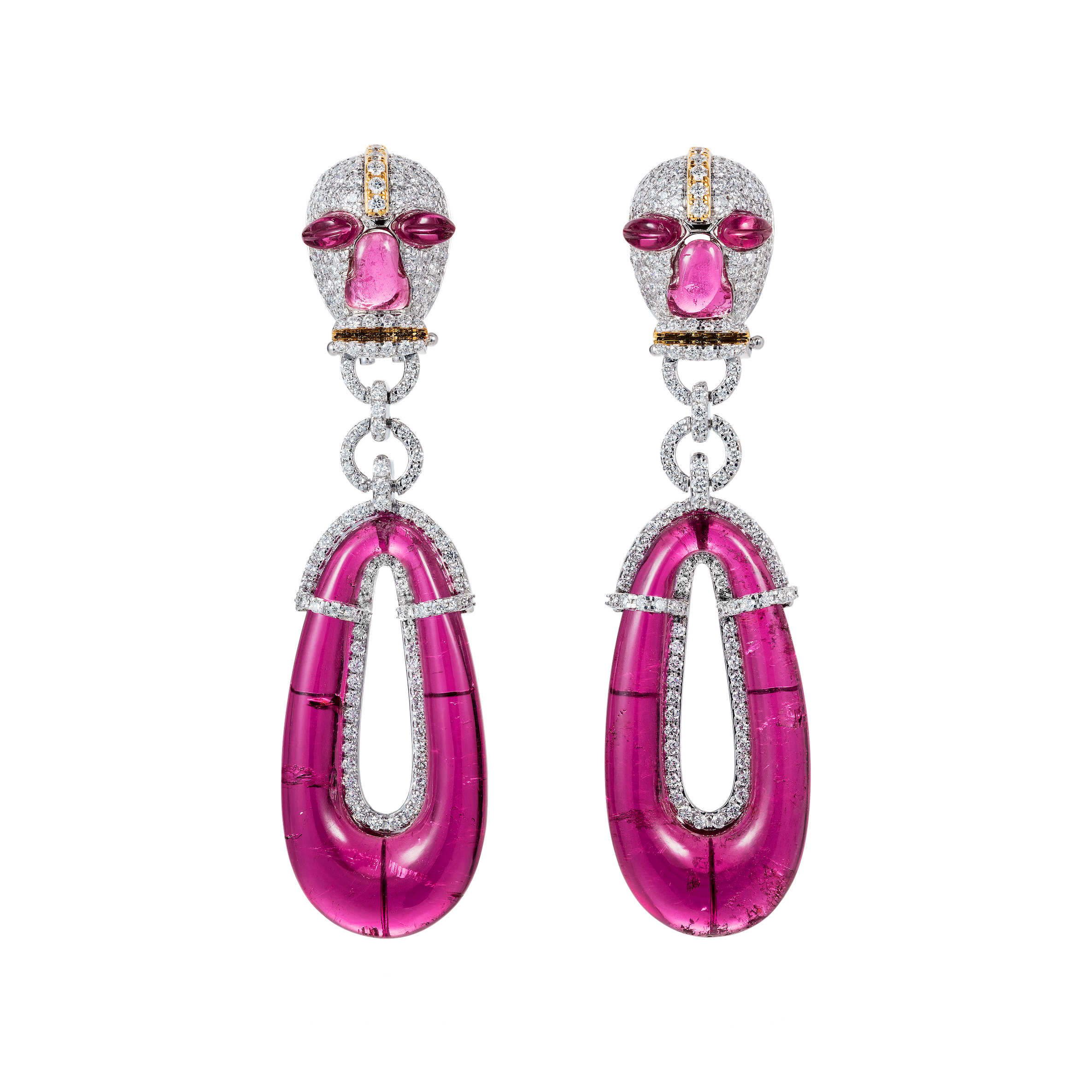 The first series of our signature Nomoli earrings, sculpted entirely in rubellite with brilliant diamonds.