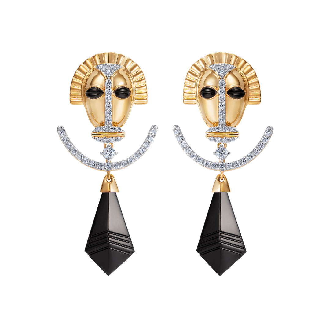Inscribed onyx stelae adorned with our stylised figurative head, finished with brilliant diamond accents.